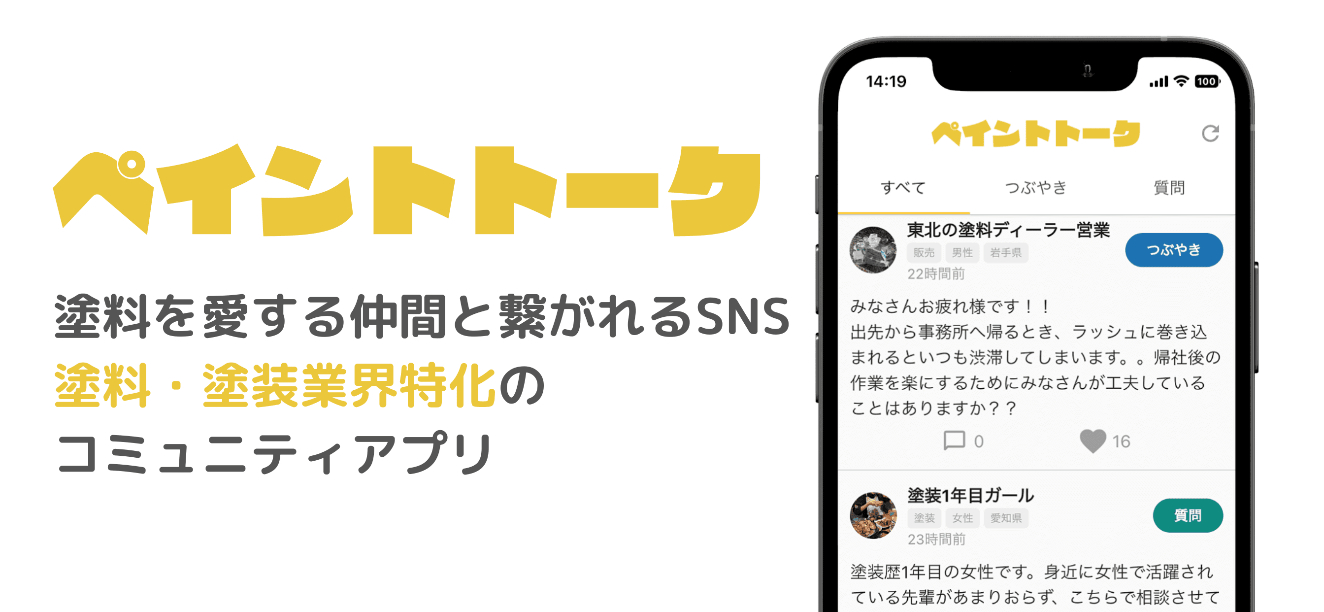 塗料・塗装業界のための無料SNS「ペイントトーク」をリリースしました。